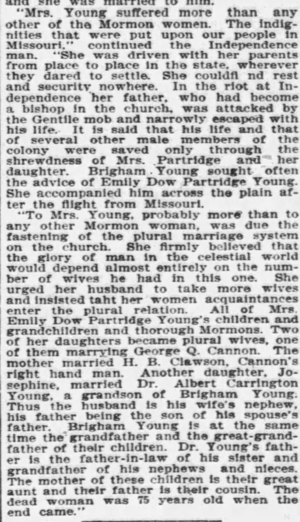 The girls’ grandmother was one of his many wives: Emily Partridge Young.