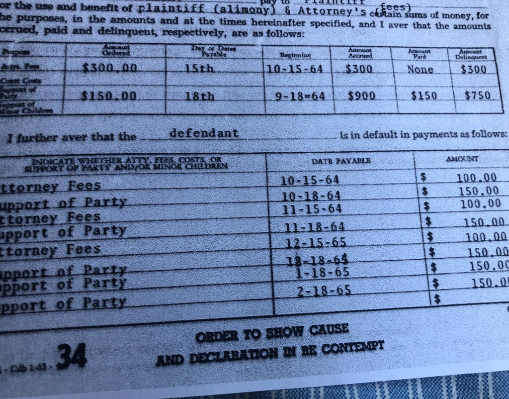 This year shows Mark has not been making his required alimony and lawyer’s fees since 1964.