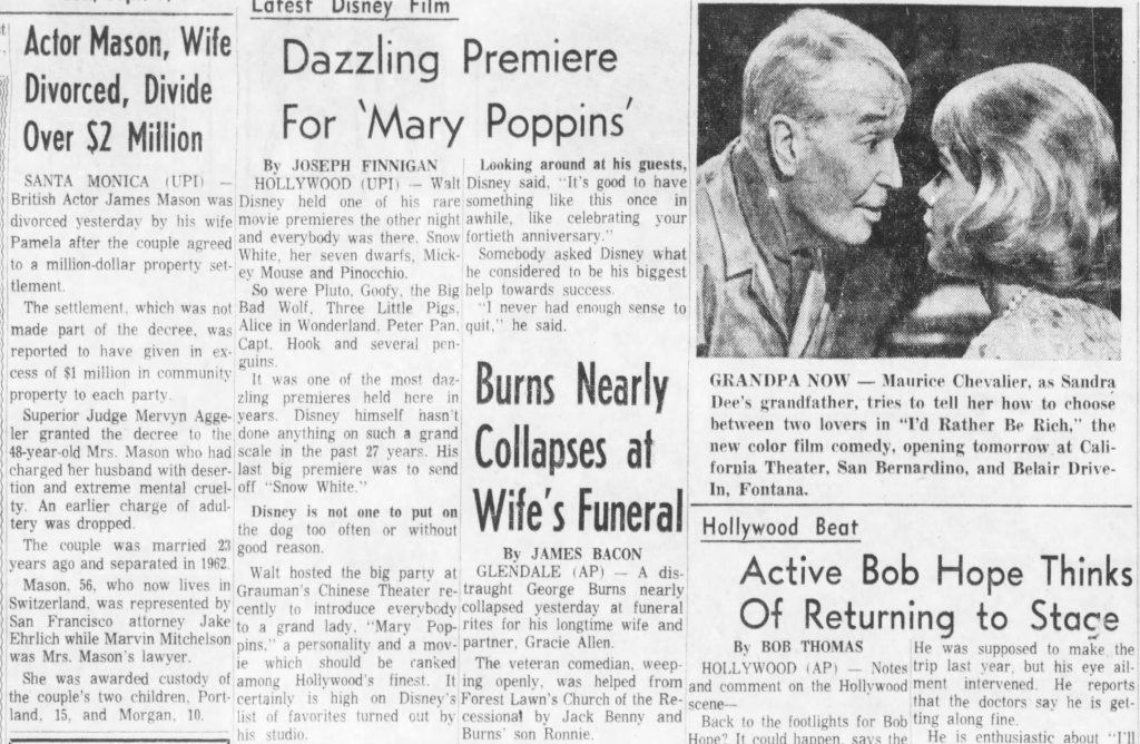 Only a few days after the articles about the Paige Young/Mark Segal divorce is published in several newspapers, more news breaks that Beverly Hills society matron and LA talk show host, Pamela Mason, has won an unprecedented amount of money in a divorce settlement from husband of 20 years: suave British-Hollywood actor, James Mason.