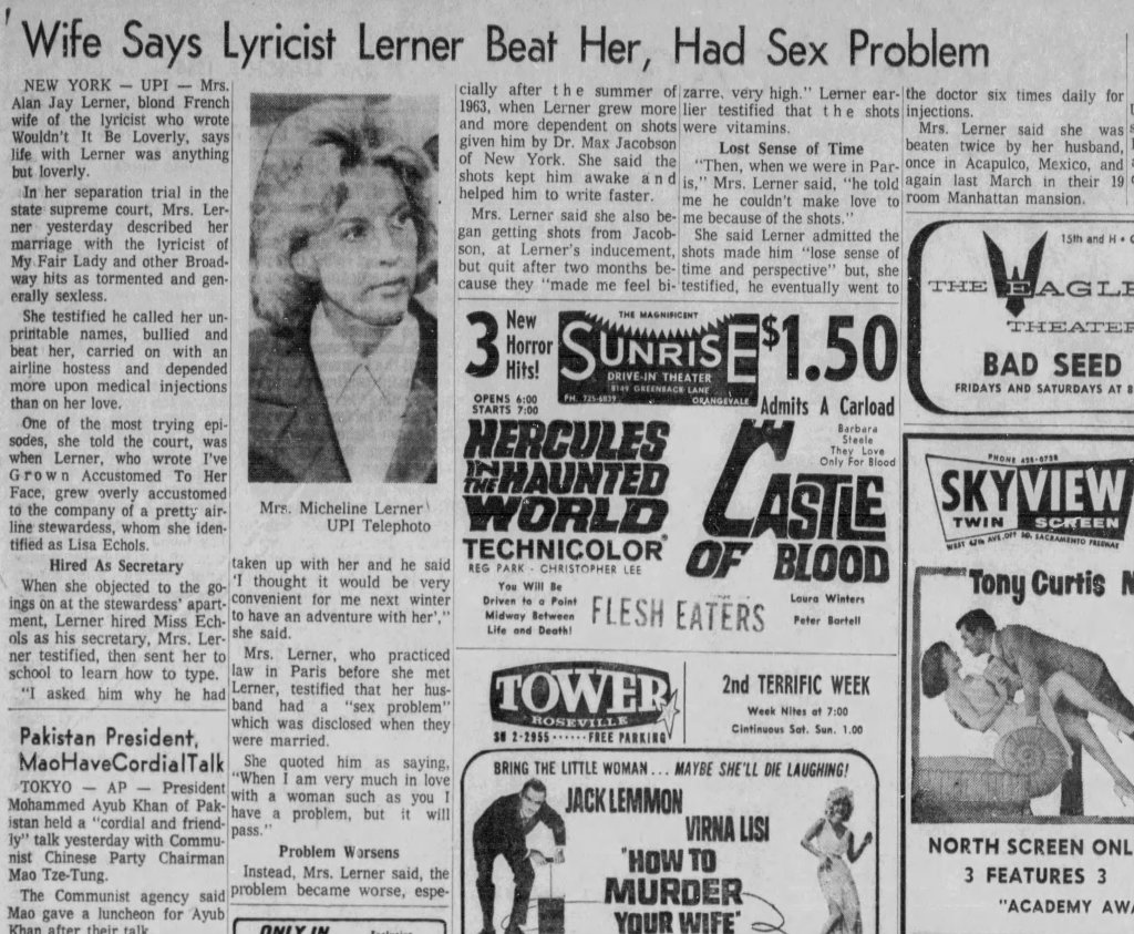 However, both men did have some things in common that most divorcing men that year did not, and that was estranged wives represented by rising lawyer Marvin M. Michelson.