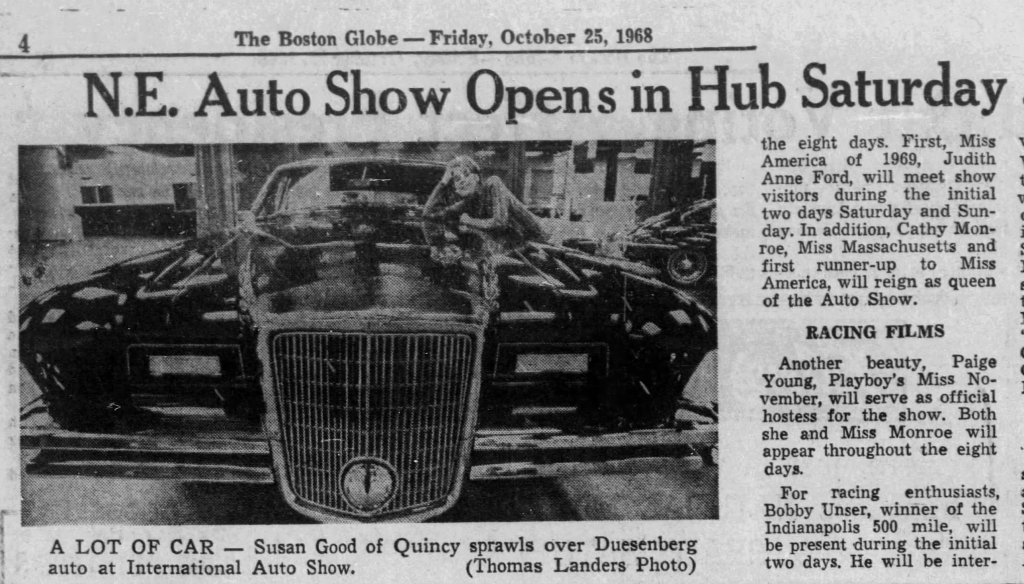 A trip to the Boston Auto Show was likely the first stop of the tour: Oct. 26-Nov. 2, 1968.