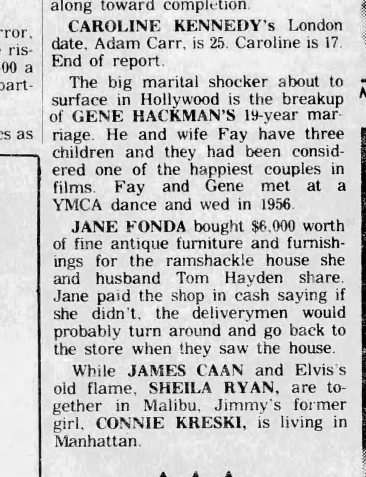Playboy Mansion regular James Caan speaks about girlfriend Connie Kreski in NY Daily News Oct. 8, 1972