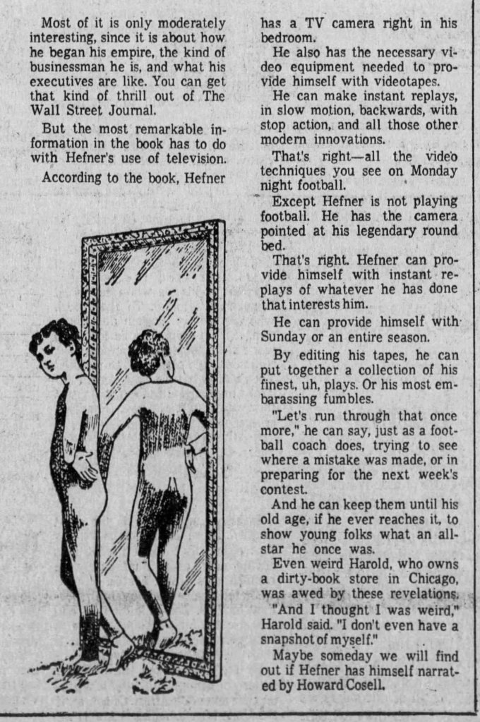 Hugh Hefner had a set up with cameras in his mansions to record sex way back when, as you shall see.
