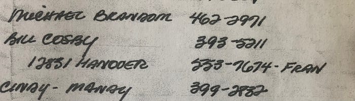 Written down by Melanie from Paige’s phone book. Both Desmond and his older brother Jonathan Guinness. were acquainted with Paige. Apparently.