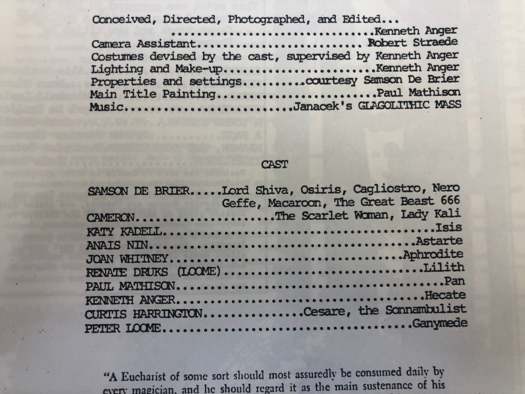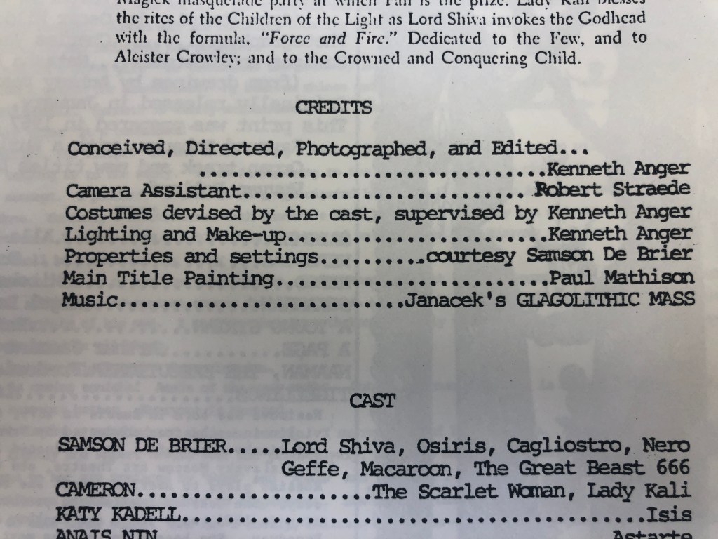 This image and the next 2 are credits for Kenneth Anger’s Inauguration of the Pleasure Dome.