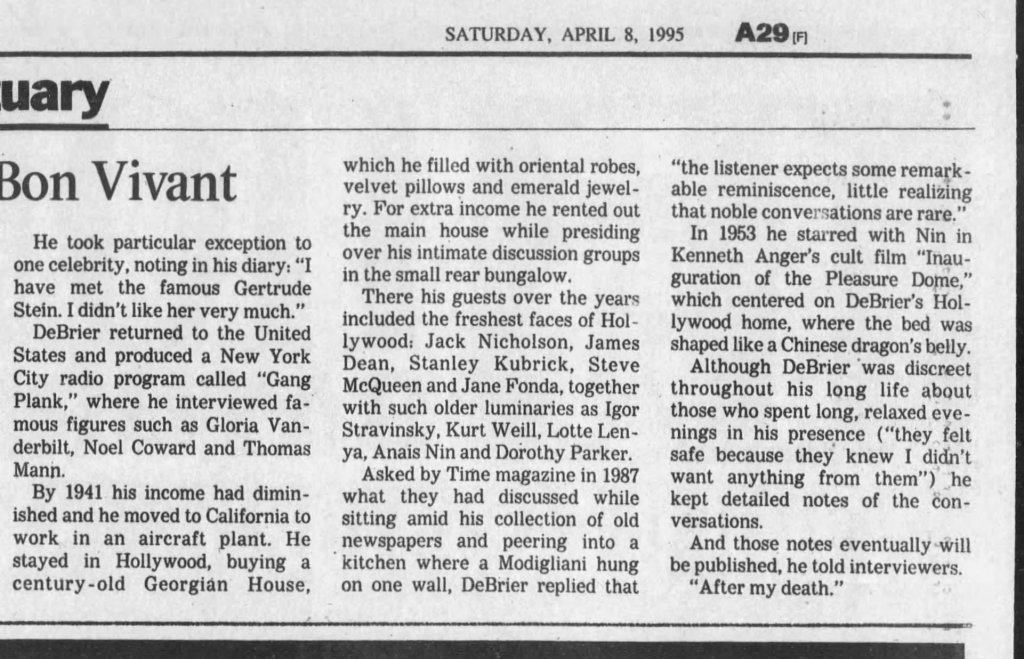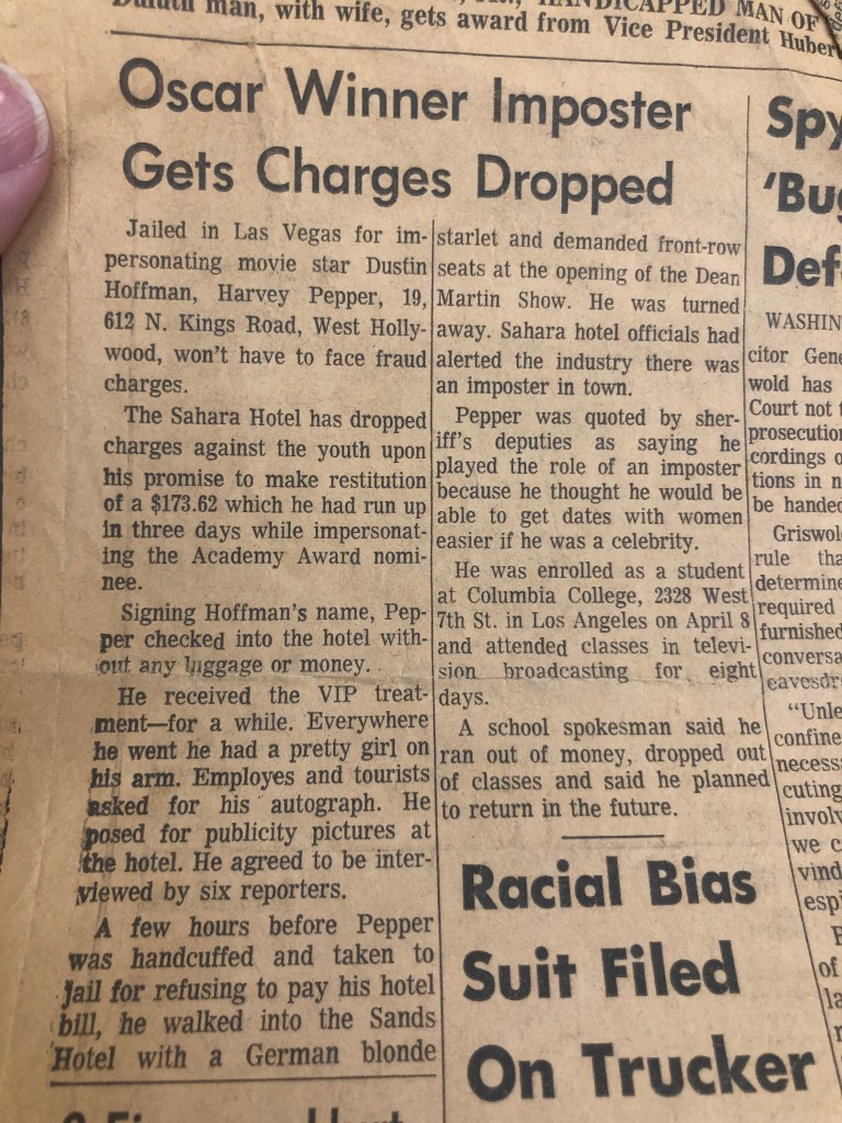 2 newspaper items found by me in newspaper archives. Los Angeles Mirror Feb. 7, 1961. >>>>>>>>>>>