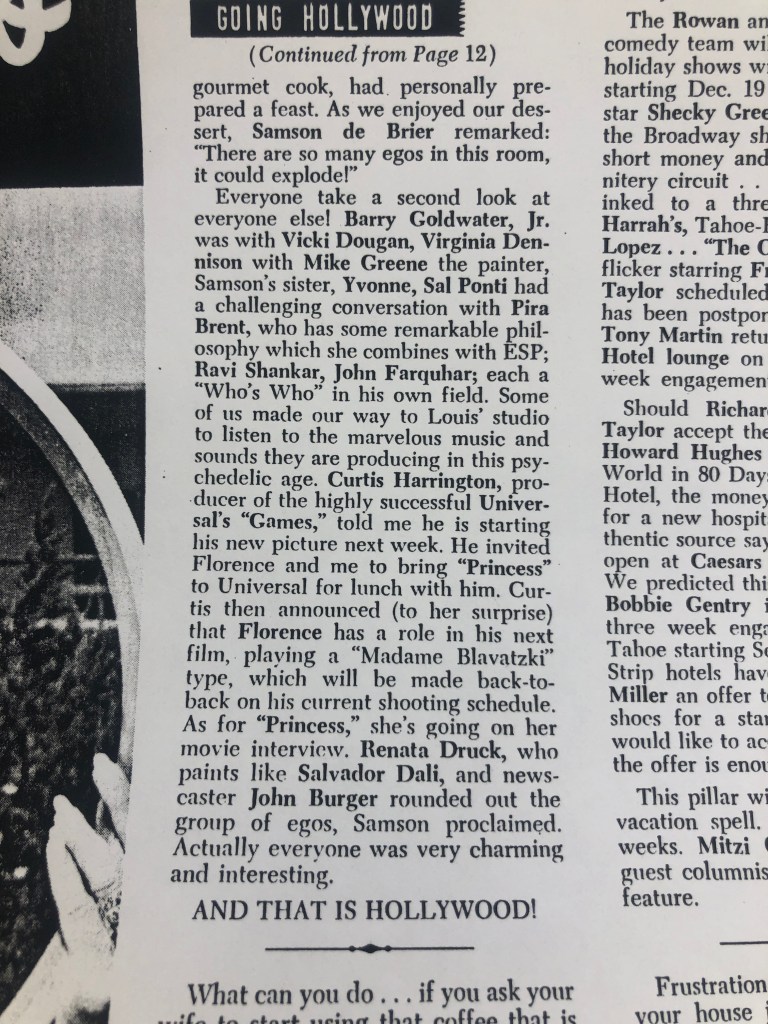 Category: 1950s, 1960s, 1970s, Popular Culture, Samson De Brier archives Tagged: #Witches, 1960sLA, 1970sLA, advertising, Cameron, design, Donna Burris, Harvey Pepper, Hullabaloo, Kenneth Anger, LA History, Layne Nielson, Los Angeles History, Los Angeles Times, Marjorie Cameron, Paige Young, Pamela Woolman, photography, Playboy Playmate, Rudi Gernriech, Samson De Brier, The Cougar Club LA, Tosh Berman, Vicki the Back Dougan, Wallace Berman