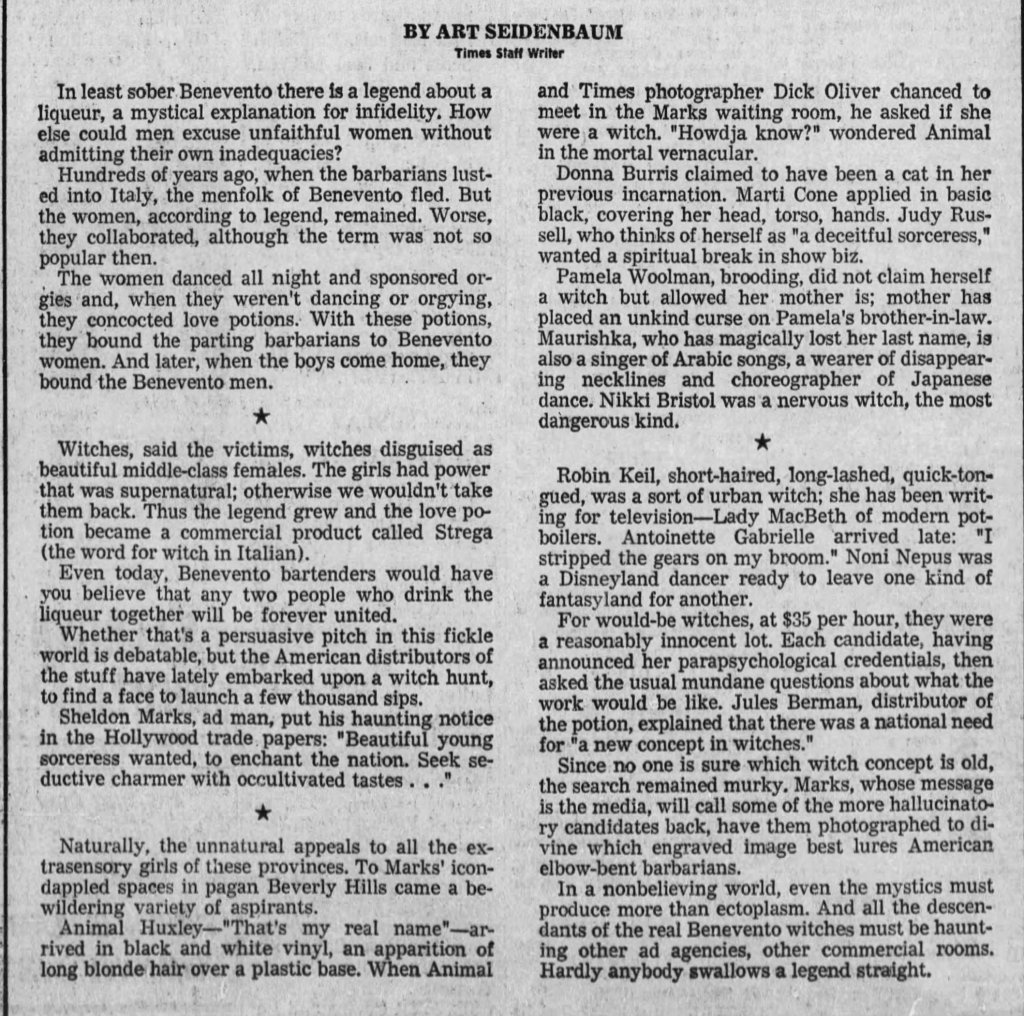 July 2, 1966 LAT. I have much more information on Animal Huxley and Pamela Woolman. Can’t find anything more on Marti Cone.