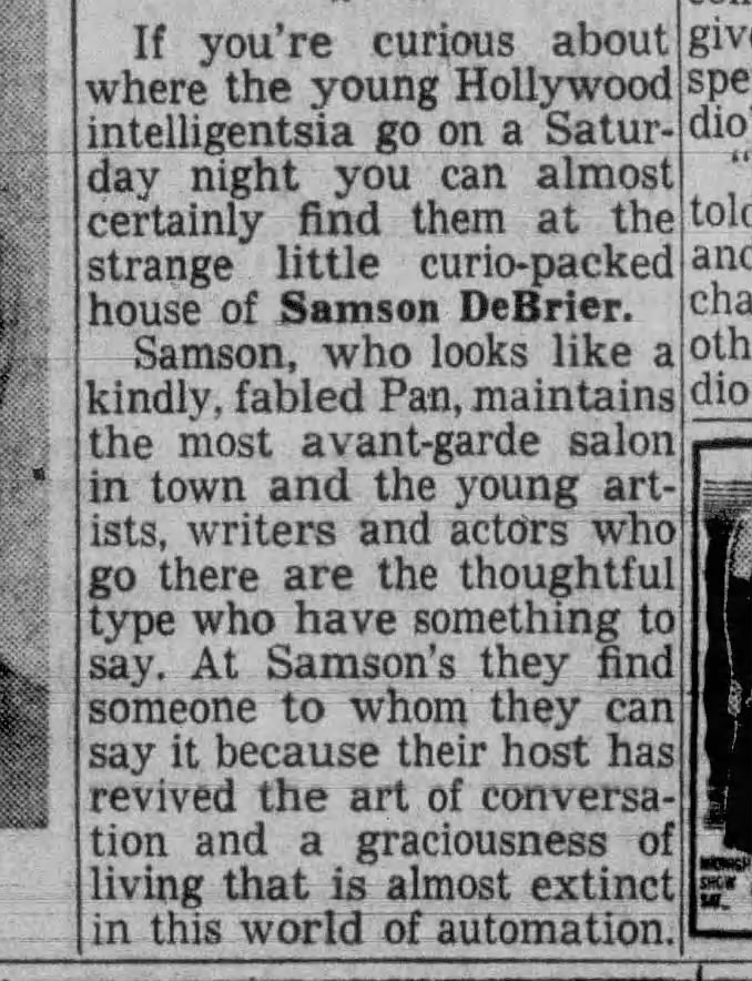 Sidney Skolsky column. A current item on Marilyn Monroe along with his mention of Samson and Kenneth Anger and the famous underground film, The Inauguration of the Pleasure Dome.