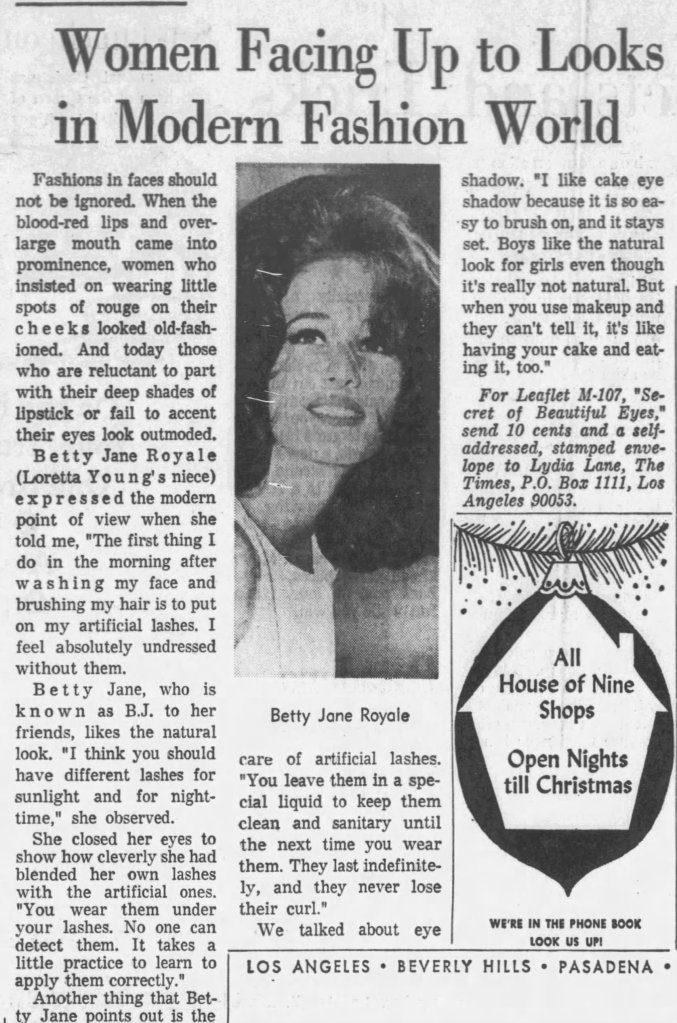 Dec. 9, 1966.LAT Mention of relation to major celebrity Loretta Young.