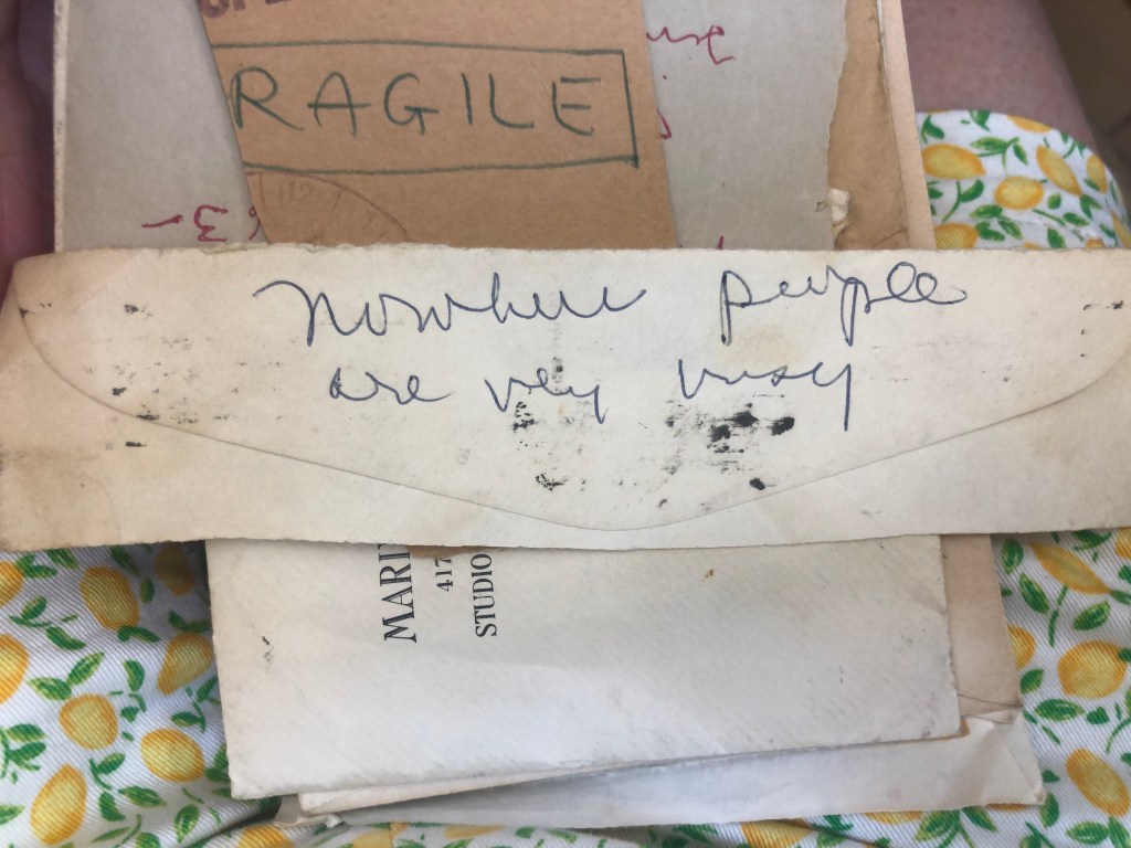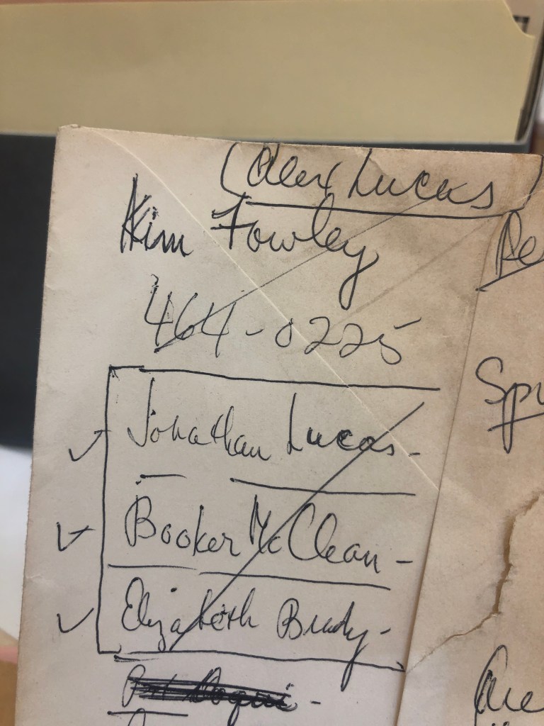 I checked the many pieces of paper and envelopes with names, phone numbers, lists or notations, written on the back.