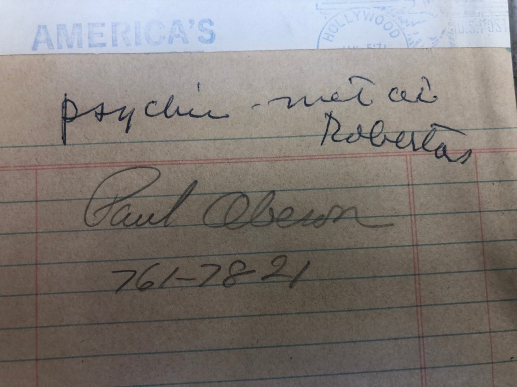 “Psychic-met at Robertas.” This would be Samson’s friend, actress Roberta Haynes.