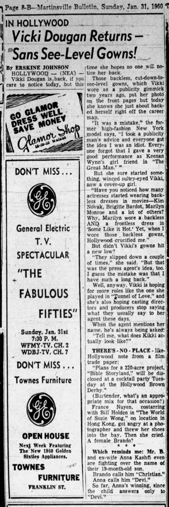 Virginia newspaper. Syndicated Hollywood gossip columnist Erskine Johnson.